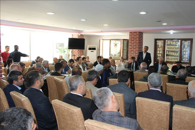 Simurg Kafede düzenlenen buluşmaya Ak Parti Mardin Milletvekili Orhan Miroğlu, İl Başkanı Nihat Eri, İlçe Başkanı Mehmet Latif Özel, partililer ve muhtarlar katıldı.