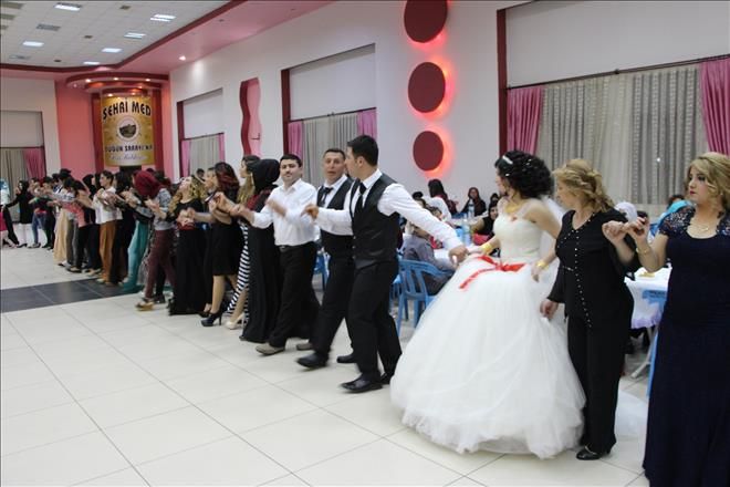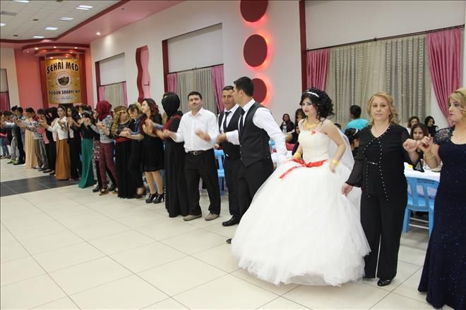 Nusaybin Şehri Med Düğün Sarayında yapılan düğün Mesut Akbulut ve Sema Polat çiftin düğün salonuna gelmesiyle başladı.