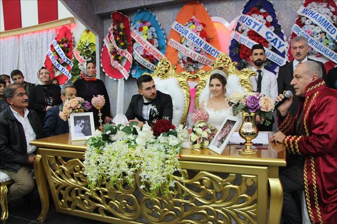 Nusaybin Belediyesi Nikâh Memuru Mehmet Emin Uçar şahitler ve misafirler huzurunda çiftin nikâhını kıydı.