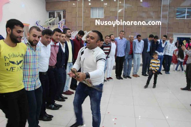 Nusaybin Şerif Başak Düğün Sarayında yapılan düğün, Kartminli damat babası Lokman Arcas ‘ın oğlu Muhammet Arcas ve Nermin Öztürk çiftin düğün salonuna gelmesiyle başladı.