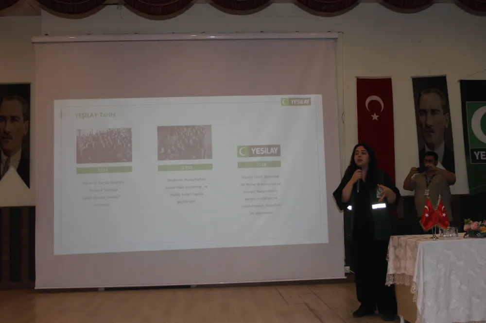 Seminer, saygı duruşu ve İstiklal Marşı’nın okunmasıyla başladı. Ardından Yeşilay’ın tanıtım videosu izlendi.