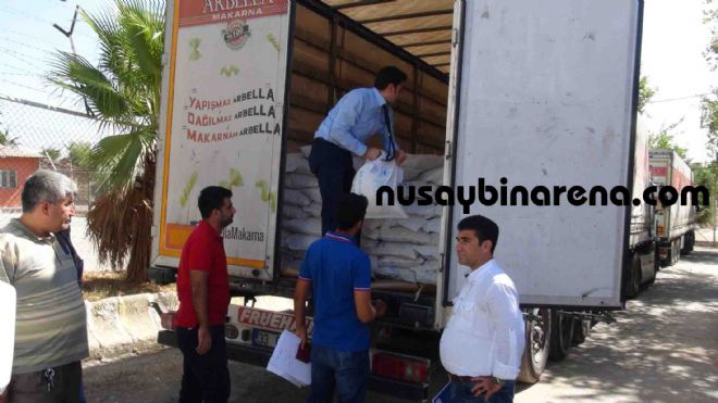 BM’ Nusaybin kara hutut kapısından Suriye`nin Kamışlı ketine yaklaşık 200 TIR’lık insani yardım gideceği öğrenildi.Dün ve Bugün 19 TIR yardım malzemesi Nusaybin hudut kapınsa getirilerek burada yapılan işlemlerinden sonra Kamışlı kenti gümrük sahasında boşaltıldı.200 TIR’lık insani yardım 10 gün içersinde tamamı Suriye tarafına geçilmesini hedeflediklerini bildirdi.-Haber-Ahmet Akkuş