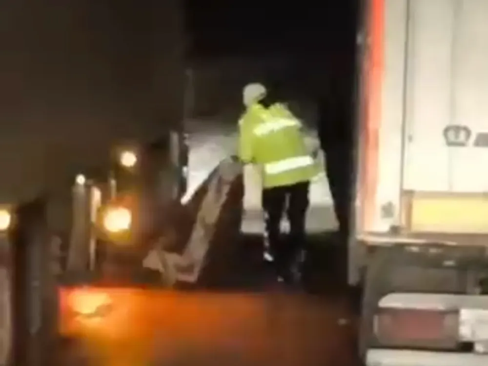 Akşam saatlerinde meydana gelen olayda, uzun araç kuyrukları oluşurken, bölgede görevli trafik polisi yolu açmak için dikkat çeken bir yöntem uyguladı. Polis memuru, elindeki bataniyeyi TIR’ın tekerleklerinin altına atarak aracın kaymasını önlemeye çalıştı. Bu yöntemi birkaç kez tekrarlayan trafik polisi, TIR’ın kontrollü şekilde ilerlemesini sağlayarak aracı yolun sağına çekti.