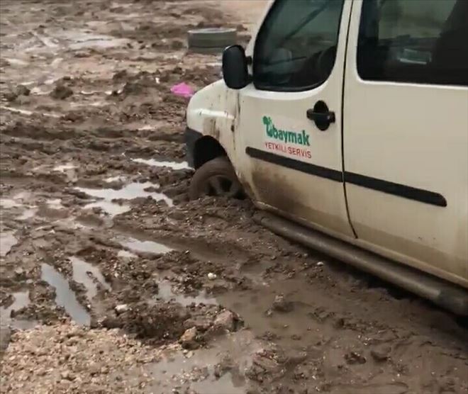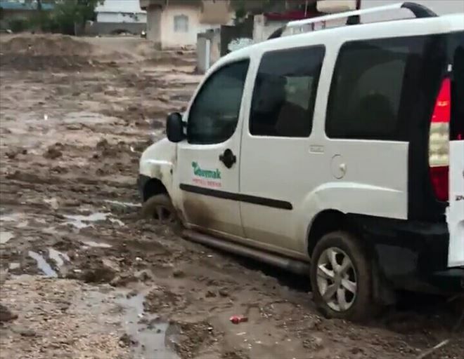 Mardin´in Nusaybin ilçesinde tamir işine giden hafif ticari araç sokaktaki çamura saplandı.