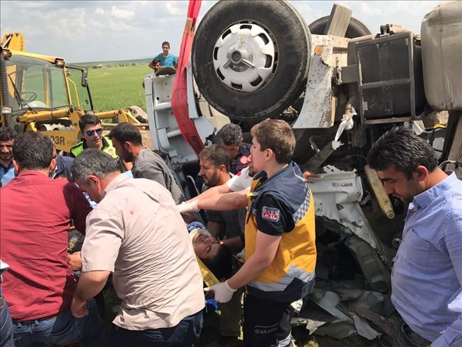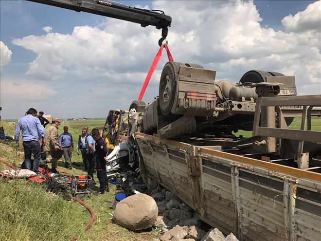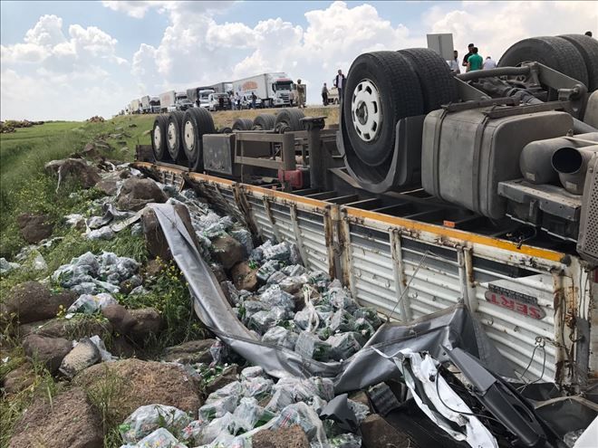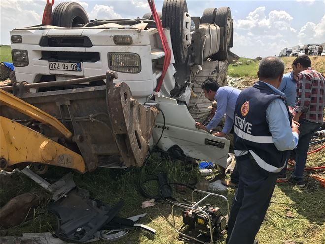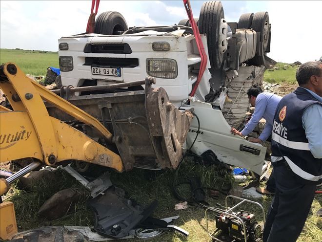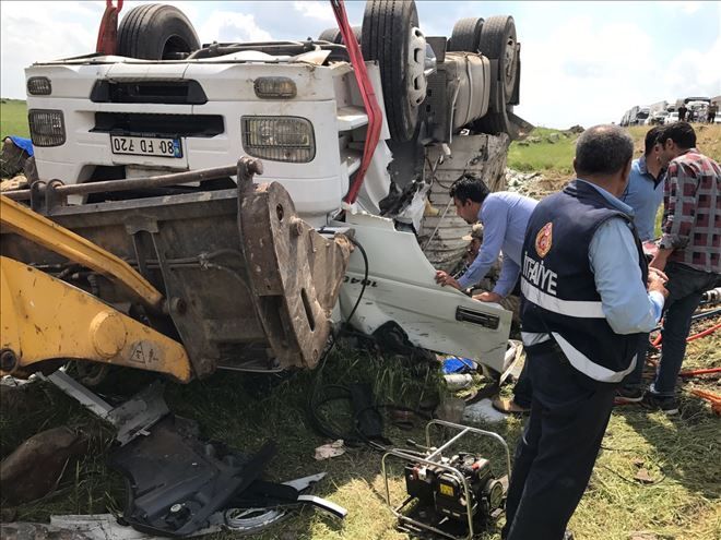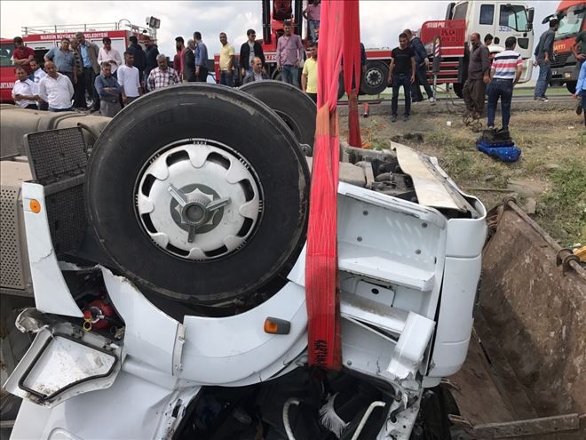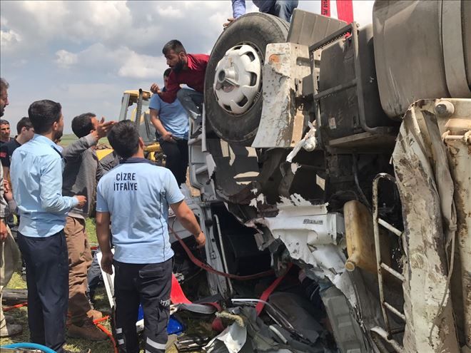 Şırnak´ın Cizre ilçesinde meydana gelen trafik kazasında hurdaya dönen Tır içinden 2 kişi yaralı kurtuldu