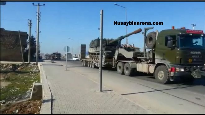 Sıkı güvenlik önlemleri altında ilçeye ulaşan konvoy Tank Tabur Komutanlığı`na konuşlandırıldı. Bugün öğlen saatlerine doğru, sıkı güvenlik önlemleri altında Mardin`den gelen ve tank, fırtına topları ile askeri malzemelerin yüklü olduğu araç konvoyu, Nusaybin İlçesi`nden geçerek Şırnak`ın Cizre İlçesi`ne doğru devam etti. Askeri konvoyda, 10 adet tankın yine askeri araçlarla taşınırken, çok sayıdaki askeri kamyonda da askeri malzeme ve teçhizat olduğu görüldü. Nusaybin Emniyet Müdürlüğü`ne bağlı ekiplerin eşlik ettiği askeri konvoy, Cizre İlçesi`ne ulaştı. Fırtına topları, tank ve askeri teçhizat ile askeri malzemelerden oluşan askeri konvoy, polisin sıkı güvenlik önlemleri altında, Cizre Tank Taburu`na girerek, burada konuşlandırıldı.-Haber-Ahmet Akkuş-Abdulhalim Baran