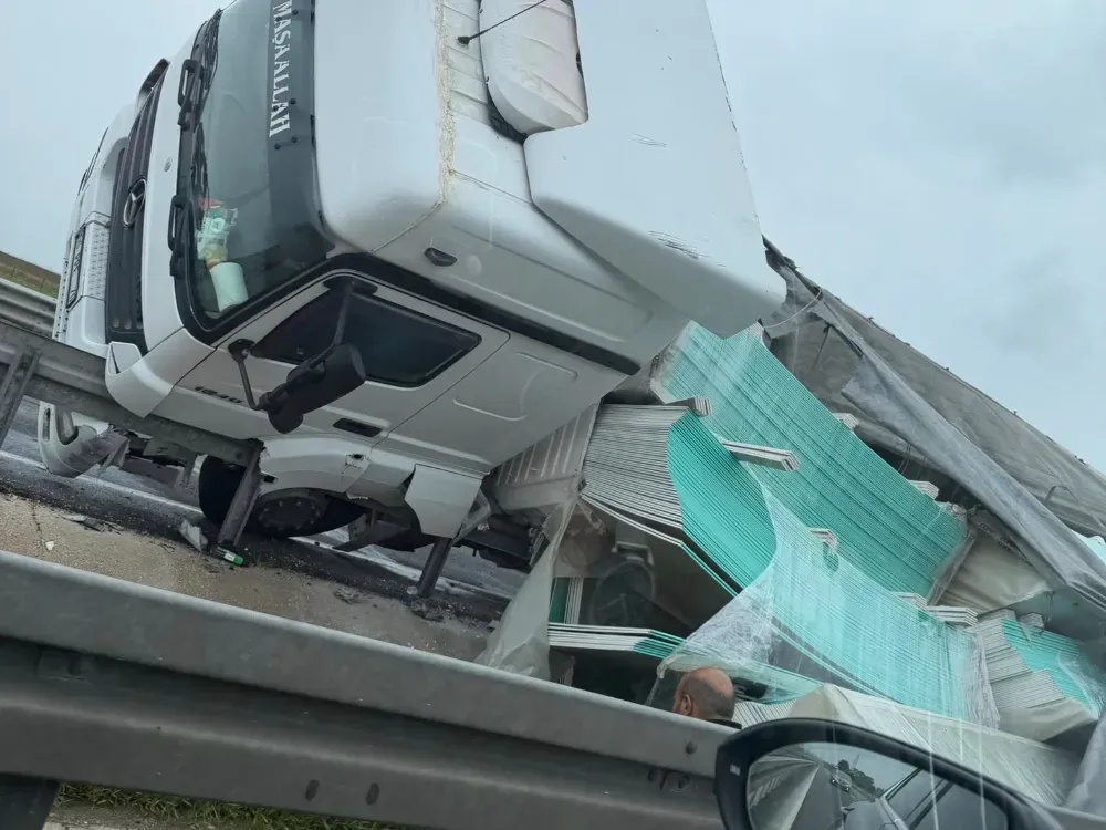 Şoförünün ismi öğrenilmeyen 06 PPE 70 plakalı alçıpan tabakaları yüklü TIR, kontrolden çıkarak demir bariyerlere çarparak yolun orta refüje devrildi. TIR yan yatarken, şoförü kazayı yara almadan atlattı. İhbar üzerine bölgeye itfaiye ve jandarma ekipleri sevk edildi. Jandarma ekipleri yolda güvenlik önlemi alırken, TIR’ın kaldırılmasıyla trafik akışı normale döndü. Kazaya ilişkin inceleme başlatıldı.