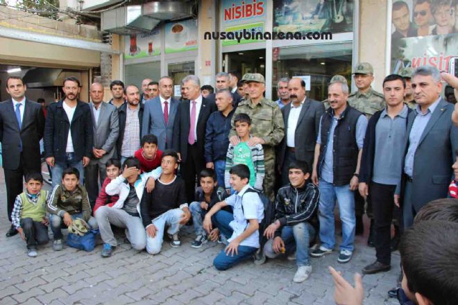 Mardin Valisi Mustafa Taşkesen, 7. Kolordu Komutanı Korgeneral İbrahim Yılmaz ve Nusaybin Kaymakamı Abdulhalim Can, esnafla bir araya gelerek geçmiş olsun dileklerinde bulundu.