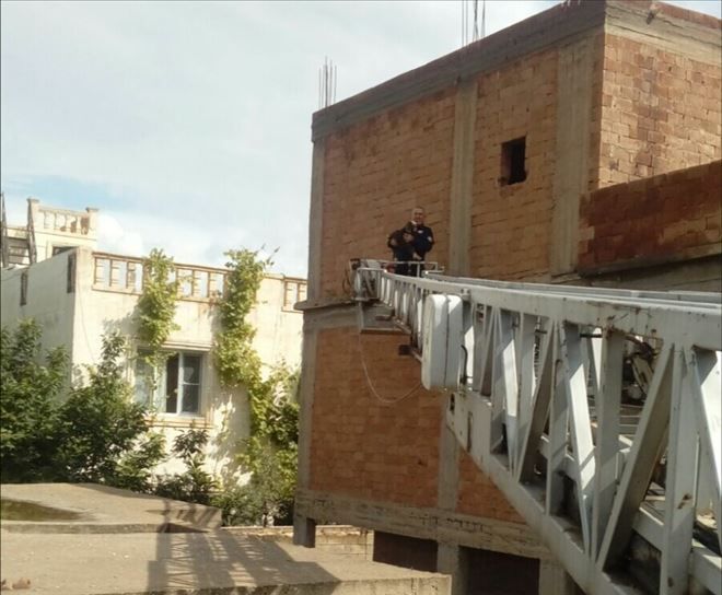 Nusaybin ilçesi Nuskent Mahallesi´nde 3 katlı bir inşaatın ikinci katındaki çıkıntıya çıkan oğlağı gören çevre sakinleri, itfaiye ekiplerine haber verdi. Gelen ekipler, uzatılan yangın merdiveni ile ulaştığı oğlağı, bulunduğu yerden indirdi.