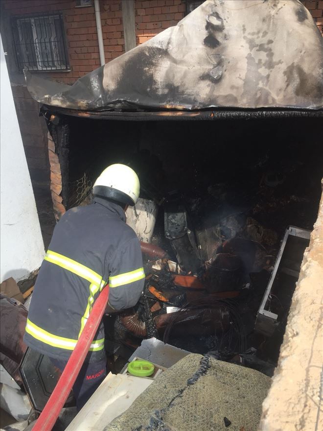 Evin kilerinde çıkan yangın çevredeki evlere sıçramadan söndürüldü