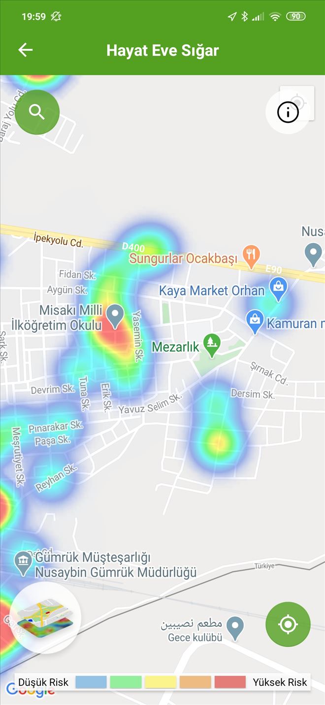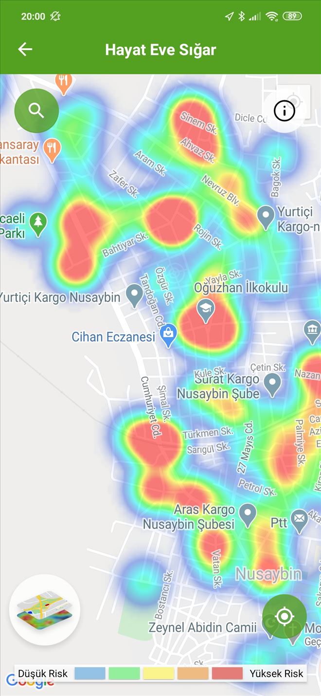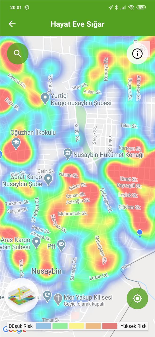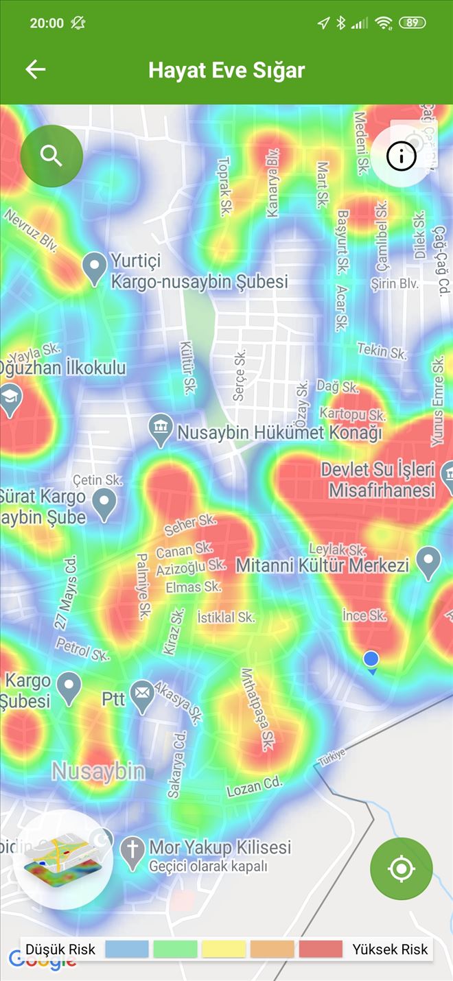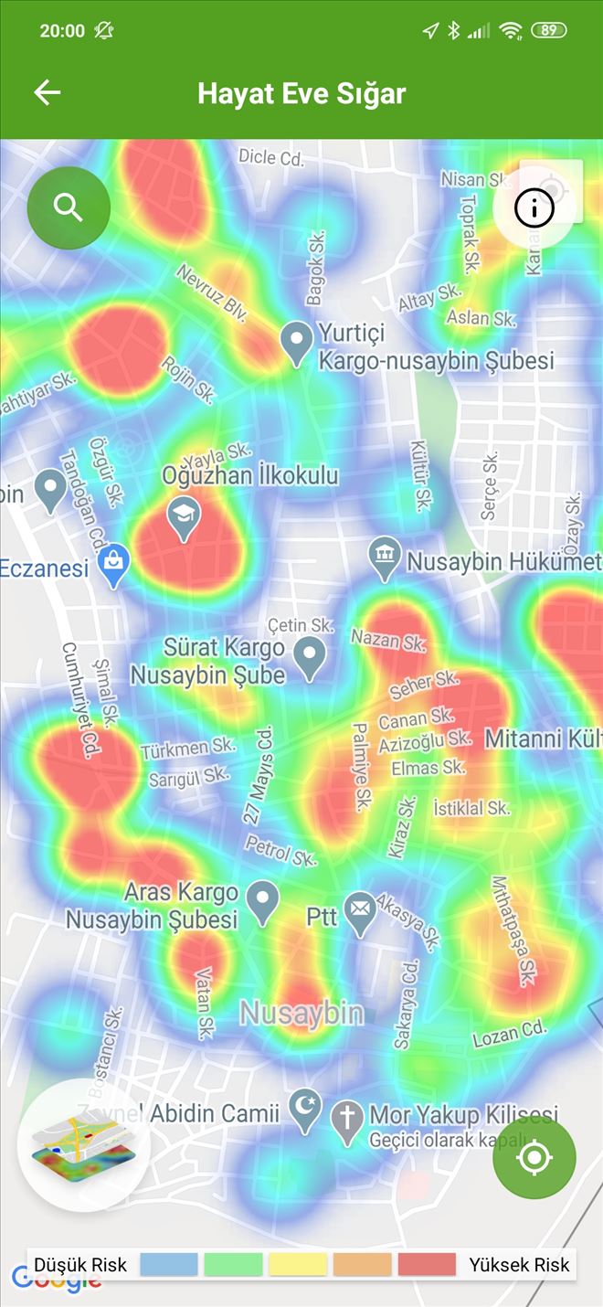 ´Hayat Eve Sığar´ uygulamasıyla Nusaybin ve bağlı olan köylerin korona virüs yoğunluk haritası güncellendi.