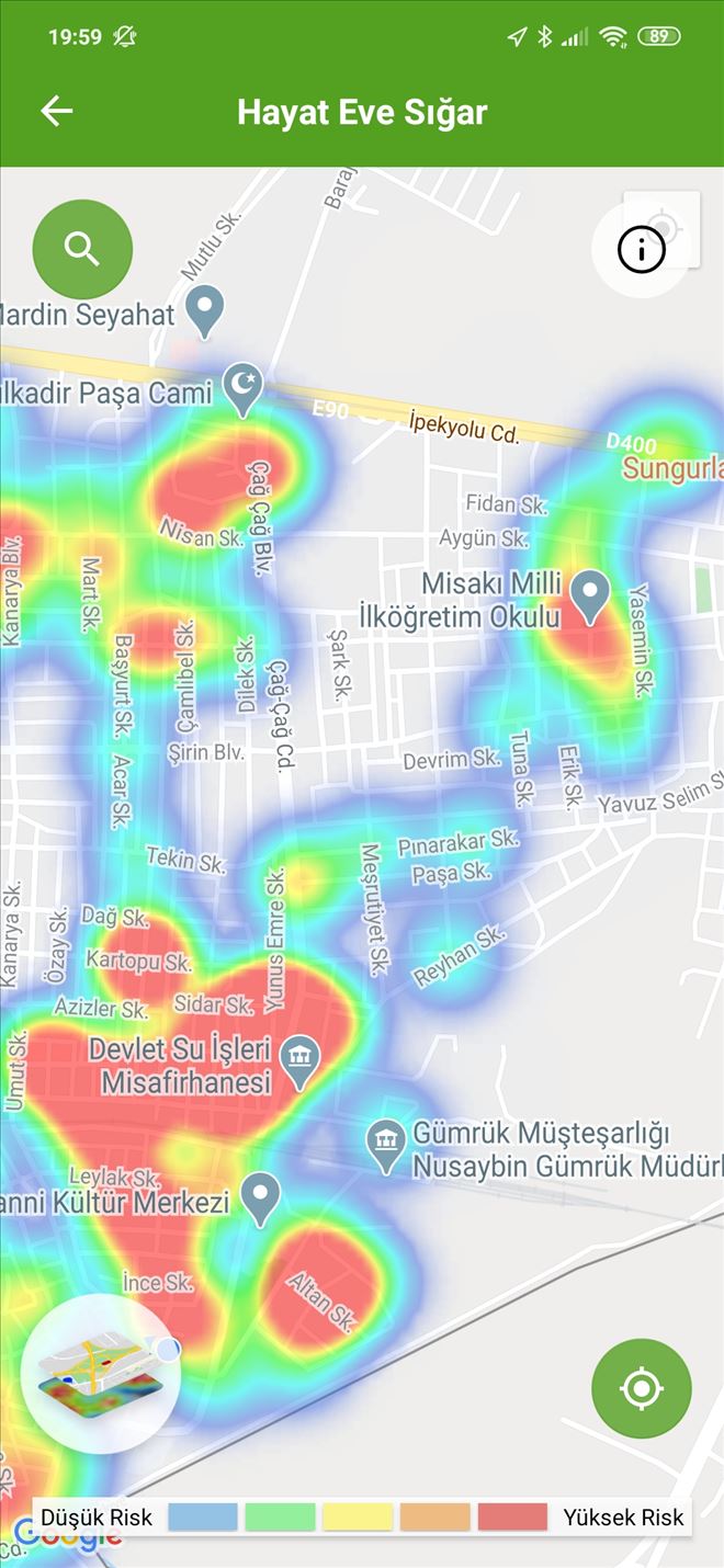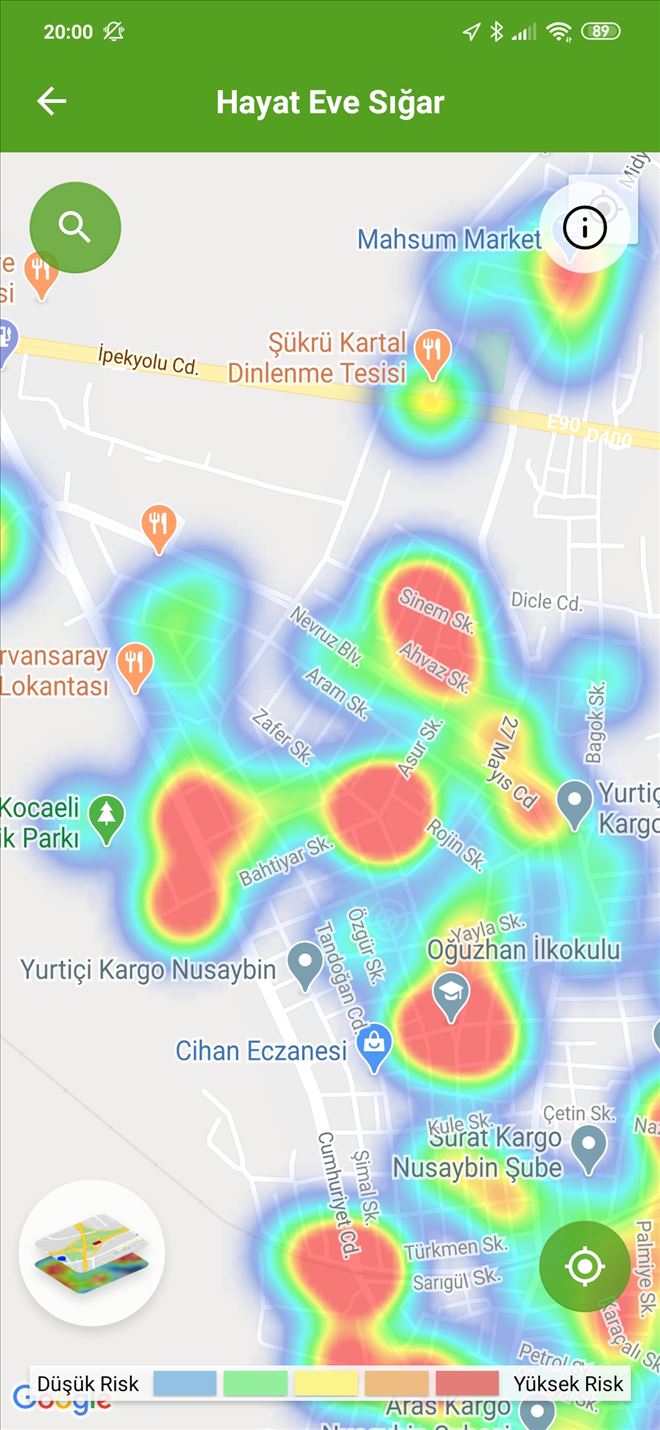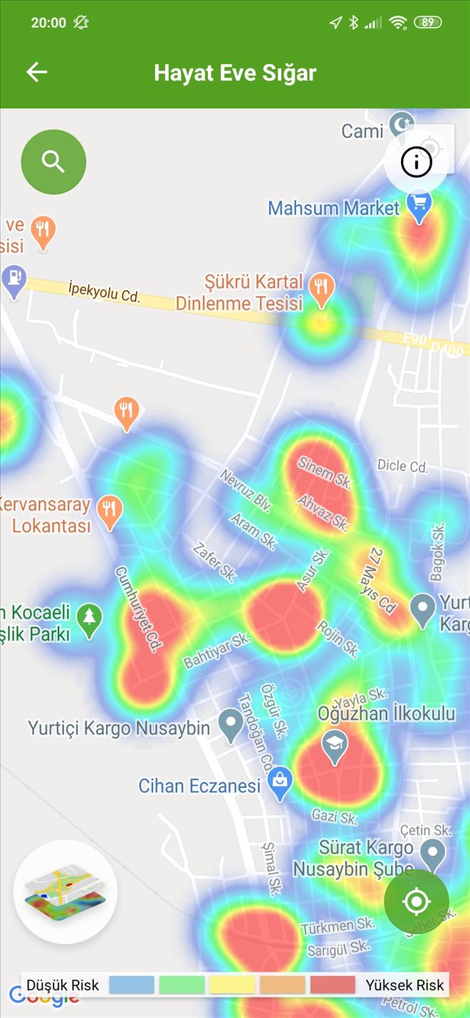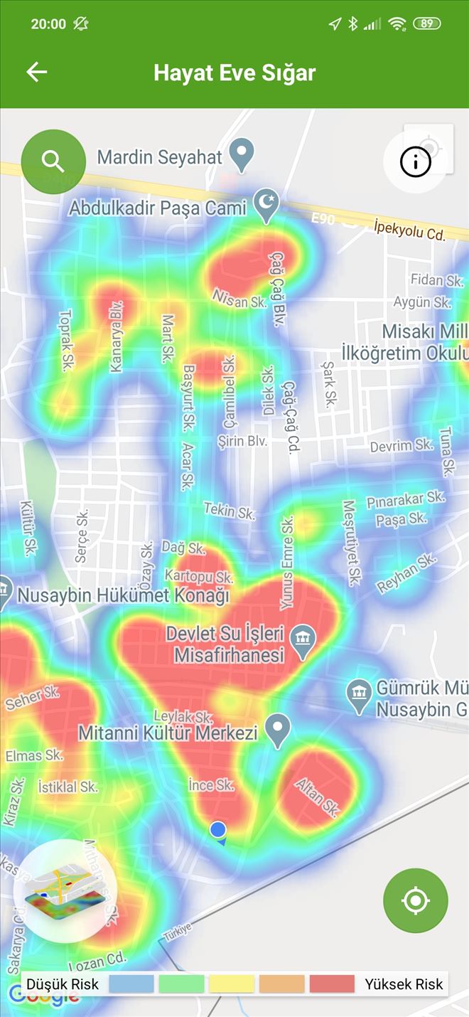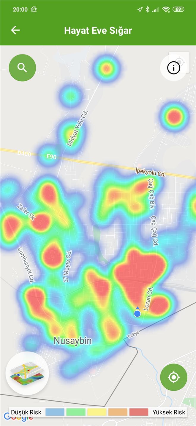 ´Hayat Eve Sığar´ uygulamasıyla Nusaybin ve bağlı olan köylerin korona virüs yoğunluk haritası güncellendi.