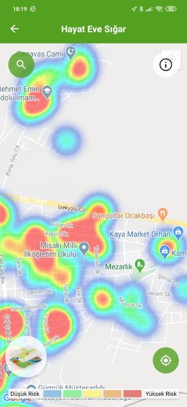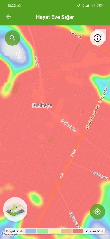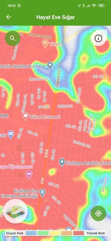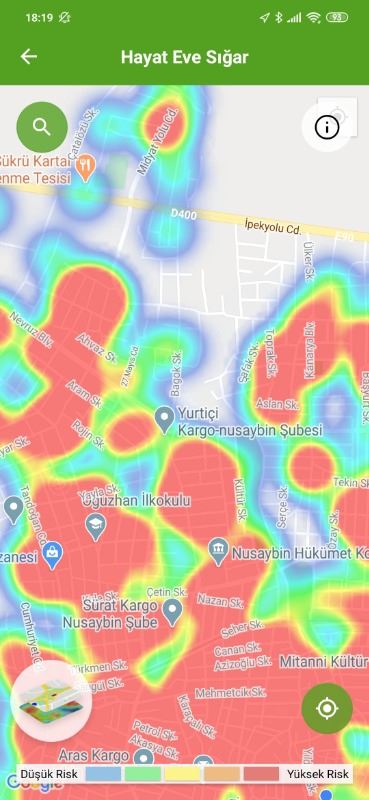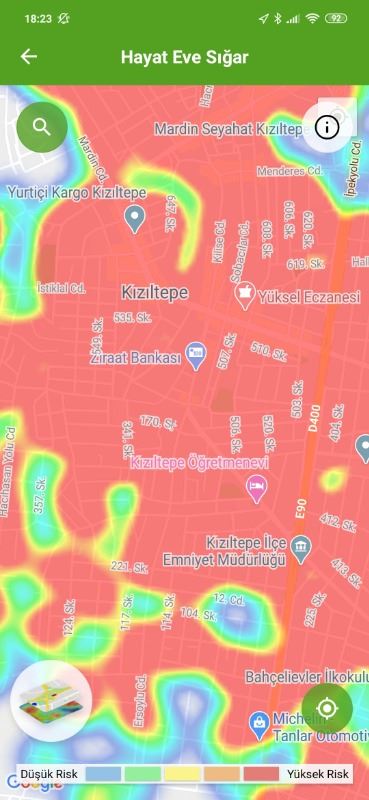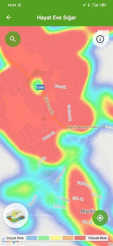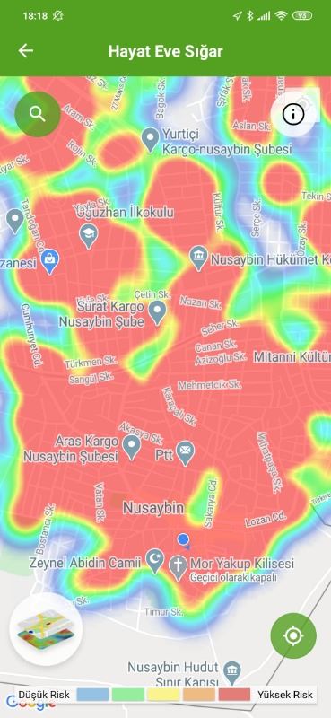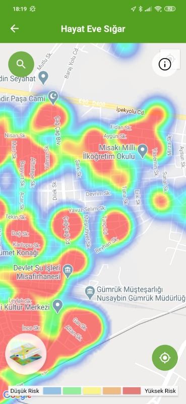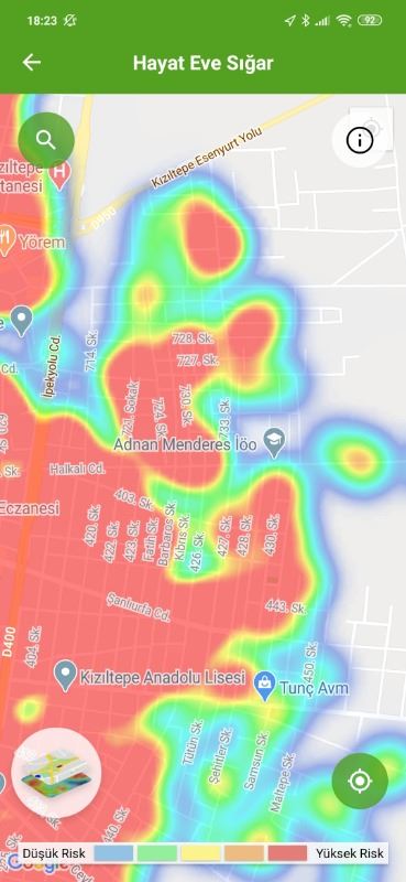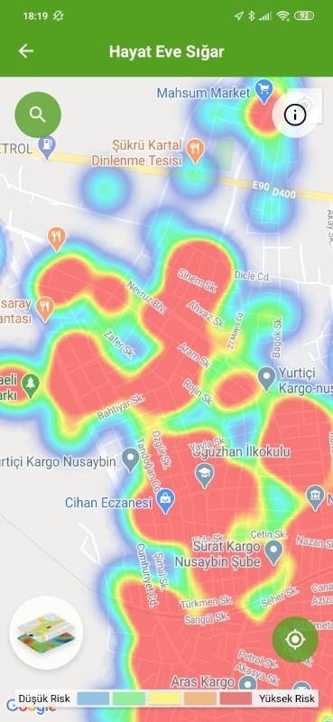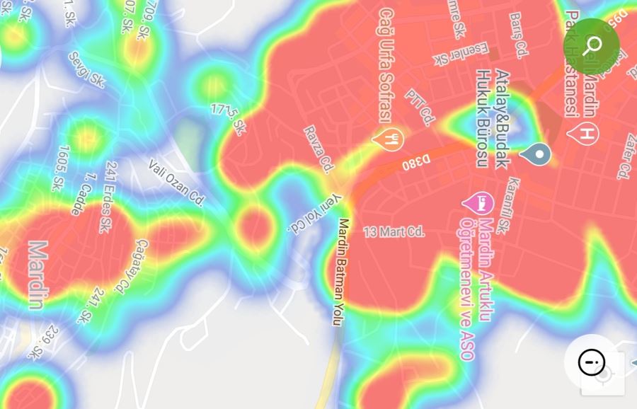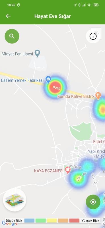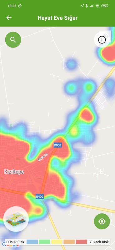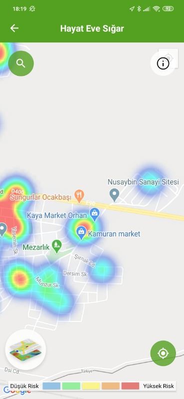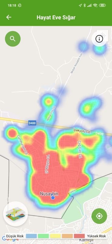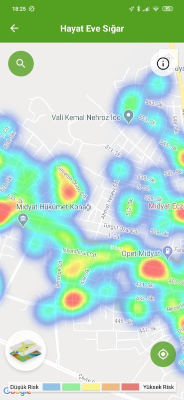 Mardin ili ve Nusaybin, Kızıltepe ilçelerin Hayat Eve Sığar uygulamasındaki Kovid-19 haritası fotoğraflarla aşağıdaki gibidir.