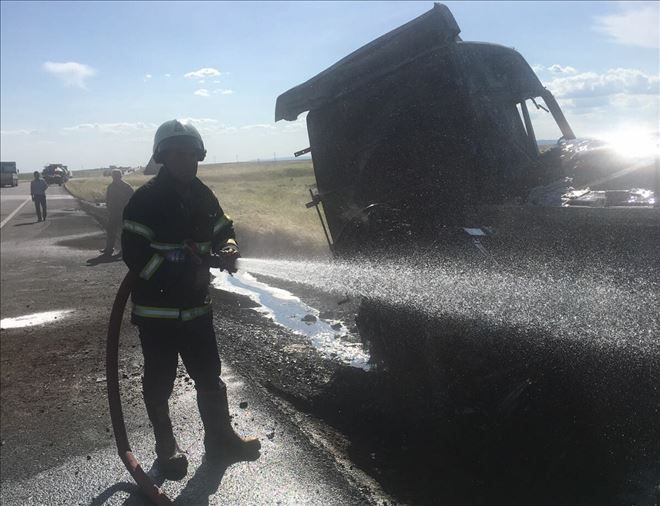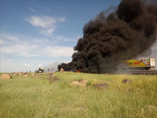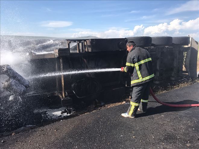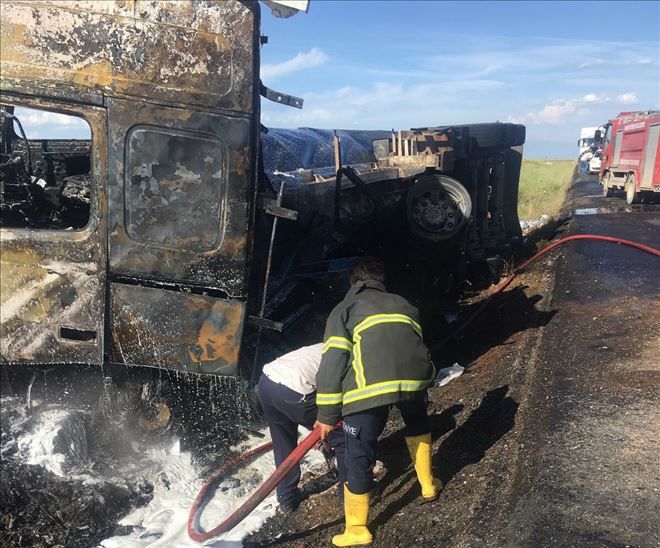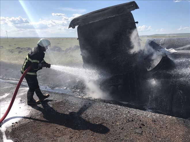 ?irnak´ın İdil ilçesinde devrilen akaryakıt tankerin alev alması sonucu tanker den geriye demir iskeleti kadı.
