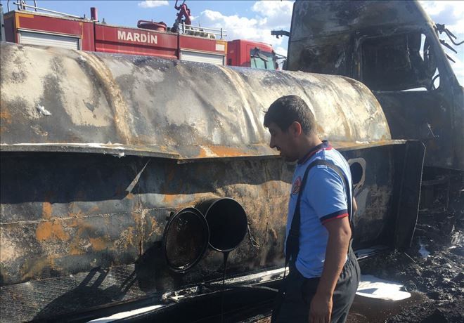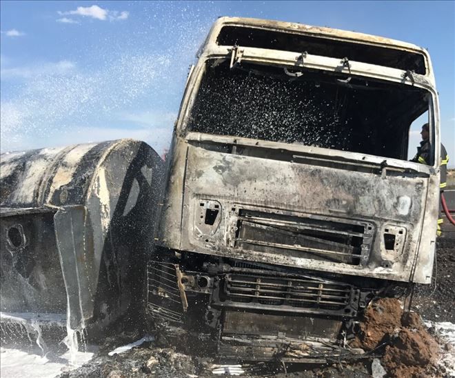 İdil´de bir akaryakıt tankeri yanarak iskeleti kaldı