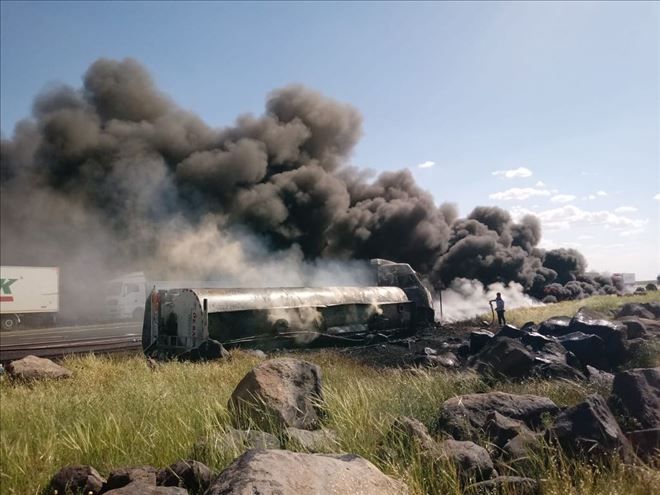 Ömer Ateş yönetimindeki 47 AJ 615 plakalı ham petrol yüklü tanker ile seyir halindeyken direksiyon hakimiyetini kaybederek şarampole yaralanmasıyla birlikte alev aldı. Sürücü can havluyla kendini dışarı atarken hafif yaralandı. Çevredekiler, Cizre ve Nusaybin İtfaiye ekiplerine haber verdi. Haber verilmesi üzerine yangın bölgesine giden Cizre itfaiyesi yetersiz kalınca Nusaybin İtfaiyesinden 2 arazöz yangın bölgesine giderek yangına köpüklü suyla müdahale ederek yangın uzun sure çalışmalardan sonra kontrol altına alındı. Yangında tanker içindeki fuel-oil yere dökülerek ve yanarak zarar oldu. Yangında tanker den geriye demir iskeleti kaldı. Olayla ilgili jandarma ekipleri soruşturma başlattı.