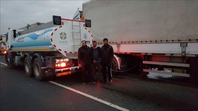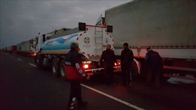 Türkiye´nin çeşitli bölgelerinden gelen ve Kuzey Irak Kürt Bölgesi´ne çeşitli sebze ve meyve taşıyan TIR ile kamyonlar, Cizre İlçesi´ne yaklaşık 35 kilometre kala oluşturdukları kuyruk, neredeyse Nusaybin´e ulaştı. Araç kuyruğu, Nusaybin´e 20 kilometreye kadar geldi. Günlerdir, gıda ve su sıkıntısı çekken şoförler, Mardin Büyükşehir Belediyesine Bağlı Nusaybin İtfaiye ekiplerine haber vererek su istedi. Haber, verilmesi üzerine İtfaiye ekipleri MARSU tankeriyle şoförlere su taşıdı. Suyu biten sürücülerin araçtaki su depolarına ekipler su aktardı. Bazı sürücüler ise ibriklerle su taşıdığı görüldü.-Haber-Ahmet Akkuş
