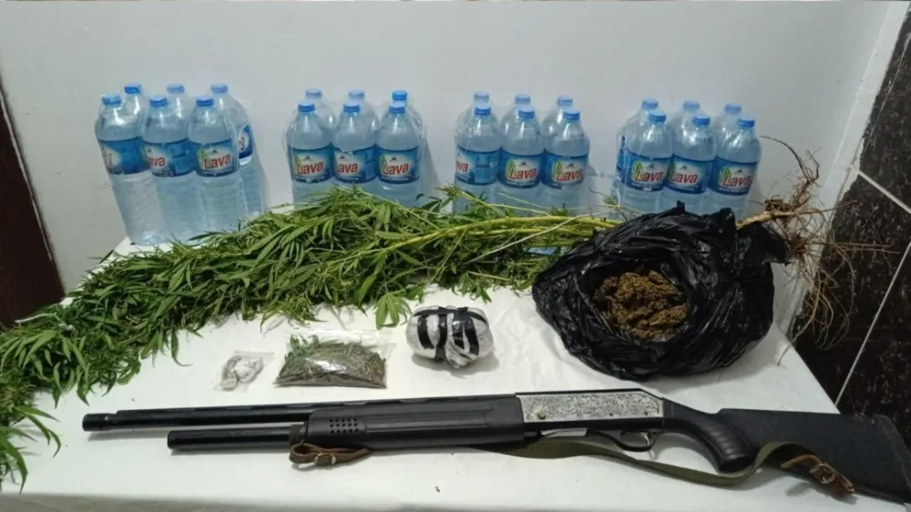 Yapılan aramalarda; 7 kilo 705 gram skunk, 569 gram metamfetamin, 10 kök kenevir bitkisi, 1 adet hassas terazi, 1 adet tabanca, 50 litre sahte alkollü içki, 4 adet ruhsatsız av tüfeği ele geçirildi.