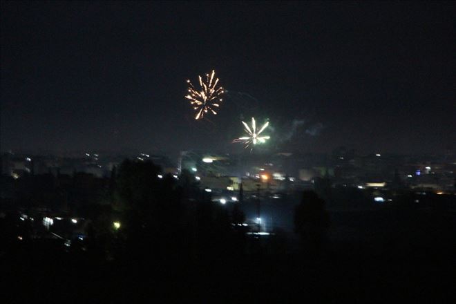 Suriye´nin Haseki iline bağlı Kamışlı ilçesinde saat.01.00´da 2019 yılına girerken havai fişek, uçaksavar ve ağır silahlar sıkılarak kutlanırken Mardin´in Nusaybin ilçesinden görüntülendi.