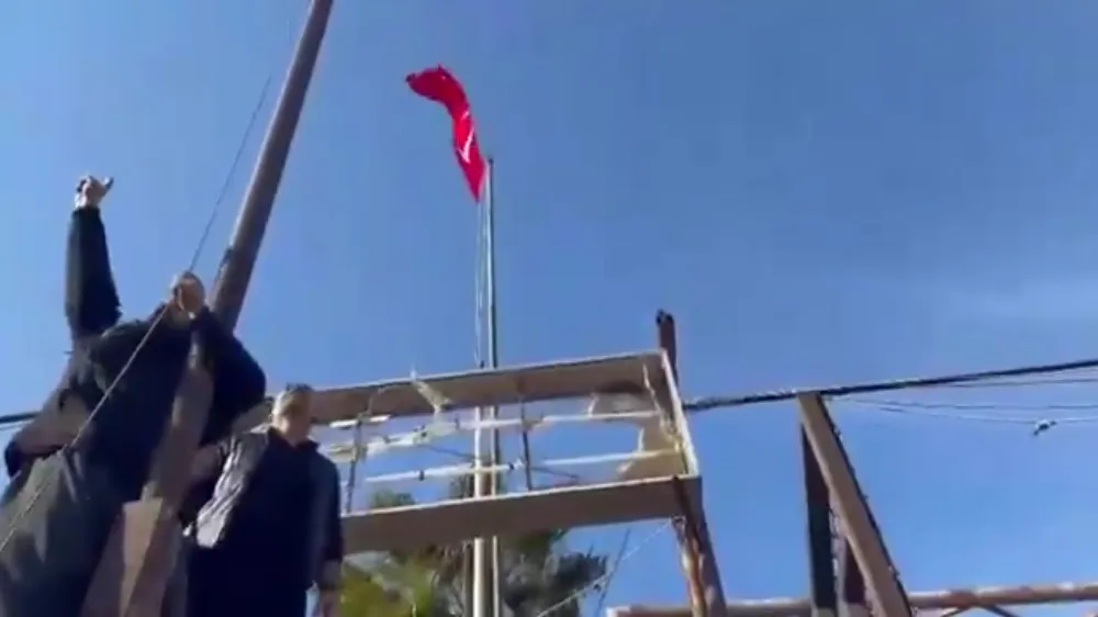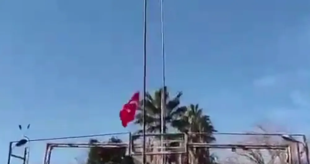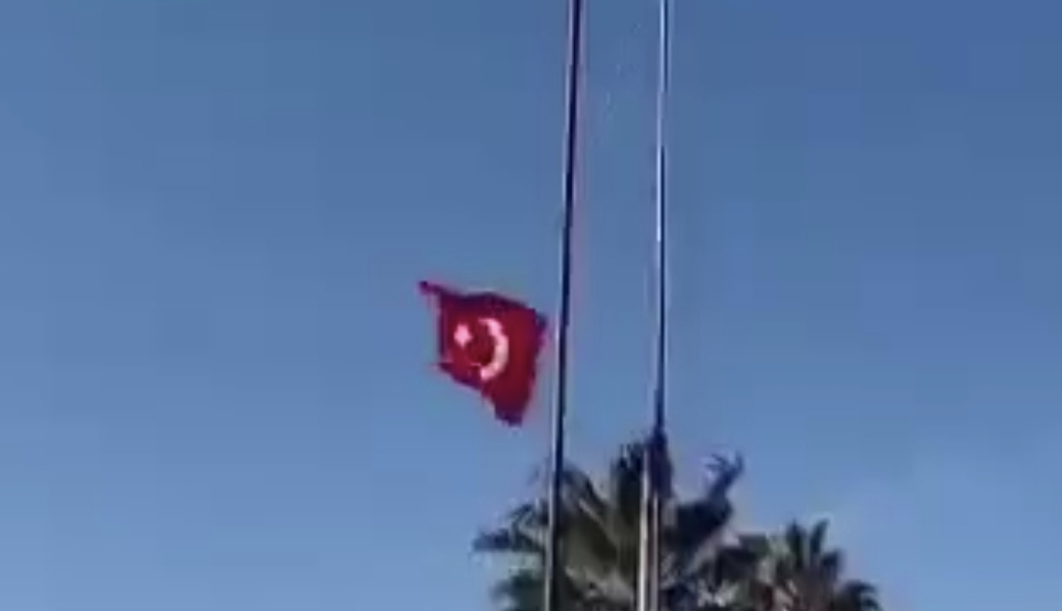 İndirilen Türk bayrağı yerine askarker tarafından yeni Türk bayrağ asıldı.