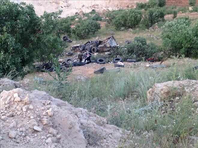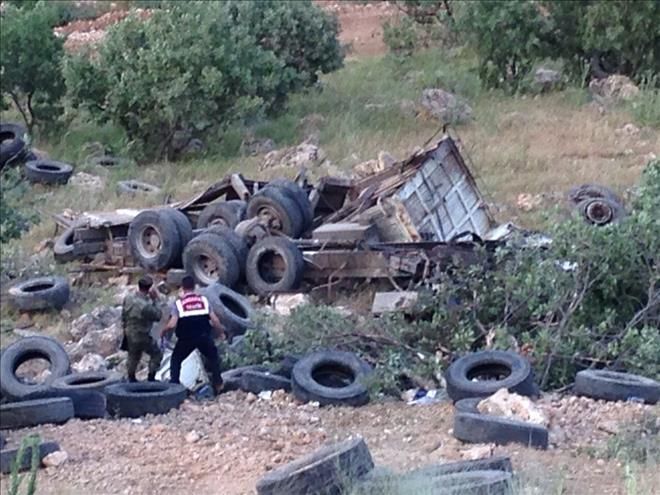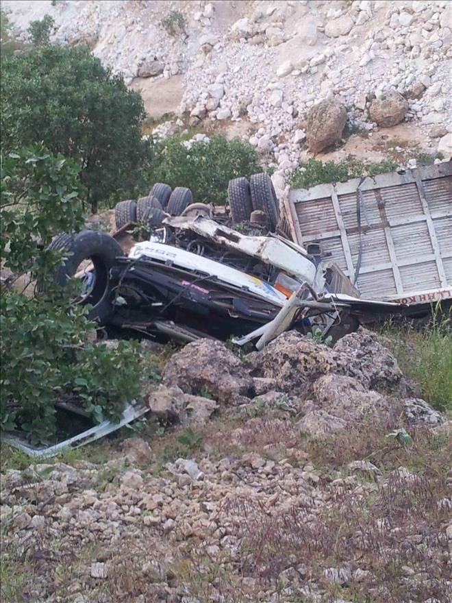 Nusaybin ilçesinde tekerlek yüklü kamyon uçurumdan aşağı yuvarlandı,İki kişi yaralı.