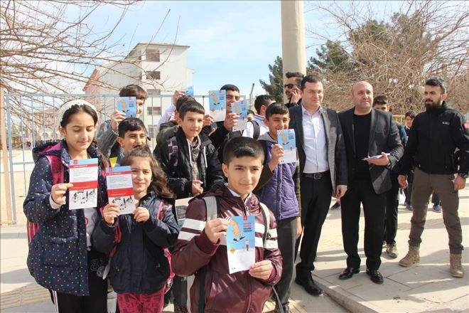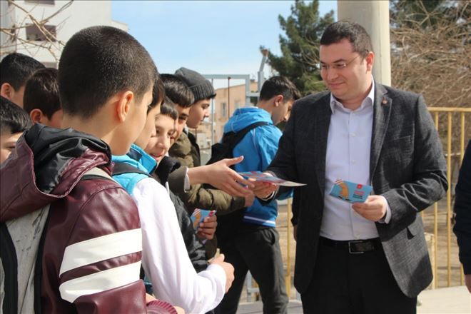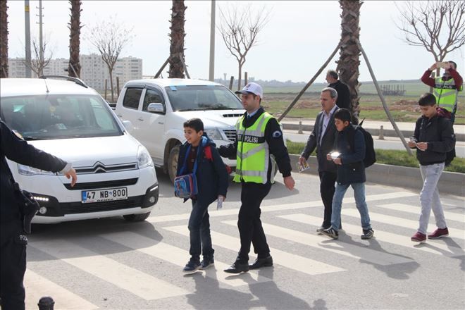 Nusaybin´in Mardin Yolu Caddesine gelen Kaymakam ve Belediye Başkan Vekili Mehmet Balıkçılar ve Emniyet Müdürü Murat Sönmez, Mehmet Akif Ersoy Ortaokulundan çıkan öğrencilerle sohbet etti.