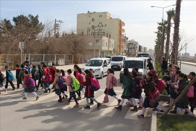 Kaymakam Balıkçılar daha sonra öğrencilerle birlikte yaya geçidinden yolun karşısına geçti.