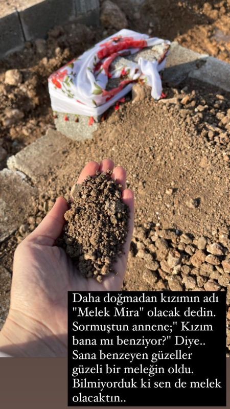 Merhume anne daha önceden cinsiyetini öğrendiği bebeğinin kız bebeği olduğunu öğrendiği kızına "Melek Mira" ismini koymuştu. Melek bebeğin kokusunu dahi almadan vefat eden anne, yakınları tarafından gözyaşları arasında defnedildi.