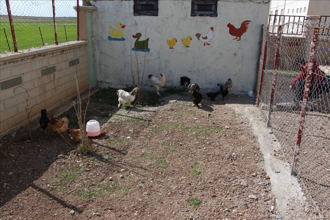 Okul avlusuna yapılan hayvan kümesinde tavşan, kuzu, horoz, yerli ve Çin Tavuğu konulduğu belirtildi.