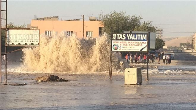 Mardin´in Nusaybin ilçesinden alt yapı çalışmaları yapan bir firma kepçesi, Mardin ili ve Kızıltepe ilçesine giden ana su boru hattını patlattı, Ortalık göle döndü.