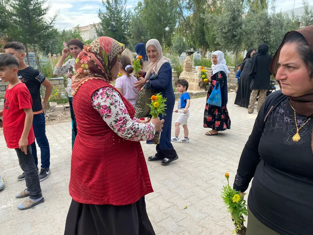 Mardin Büyükşehir Belediyesi, il ve ilçelerinde kent genelinde mezarlık ziyaretine gelen vatandaşlara çiçek dağıtımında bulundu.