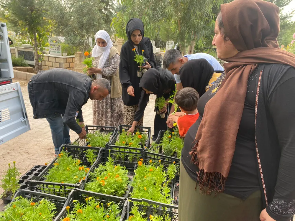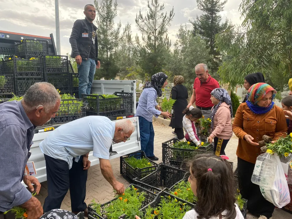 Büyükşehir Belediyesinin kendi imkanlarıyla sera alanında yetiştirdiği binlerce çiçek, Nusaybin, Artuklu, Kızıltepe, Yeşilli, Ömerli, Derik, Savur, Midyat, Mazıdağı ve Dargeçit ilçelerinde mezarlık ziyaretine gelen vatandaşlara dağıtıldı.