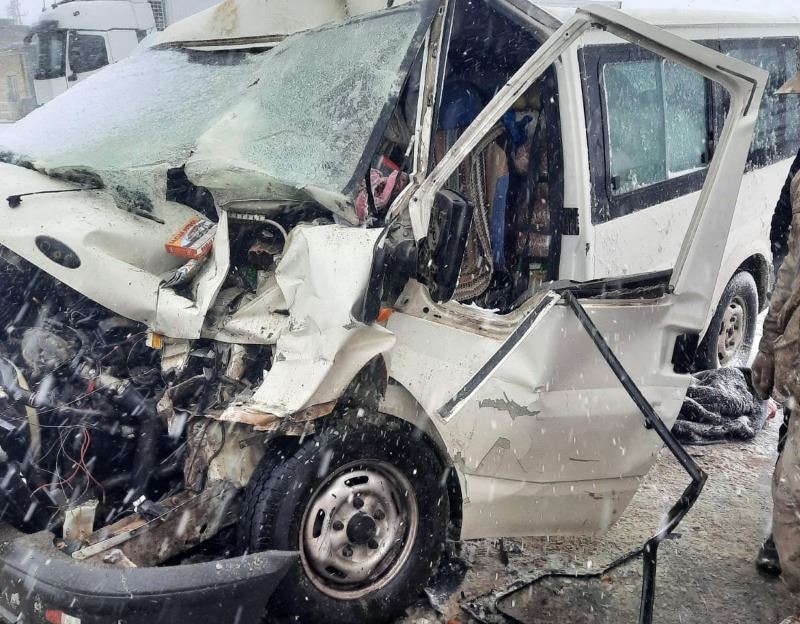 Kazada kamyonet tipi minibüs hurdaya döndü.