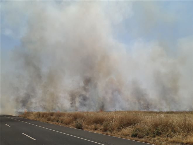 Alınan bilgilere göre, Esentep Mahallesi mevkiinde henüz belirlenemeyen nedenden dolayı Türkiye - Suriye sınırını ayıran mayınlı alandaki kuru otlar yanmaya başladı. Rüzgarın da etkisiyle yangın sıra sürede büyüdü. Duman nedeniyle İpek yolunda görüş mesafesi düşerken yangın buğday tarlalarına sıçradı.