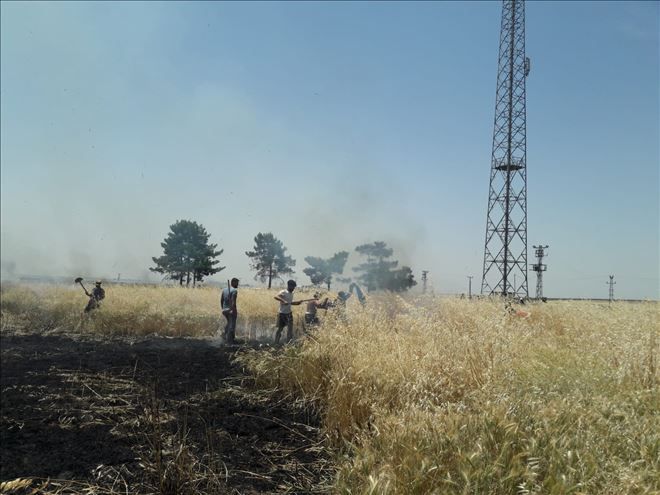 Yaklaşık 50 dönüm buğday tarlalarının yandığı yangın sonrası bölgede soğutma çalışmaları sürüyor.