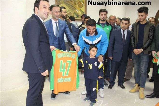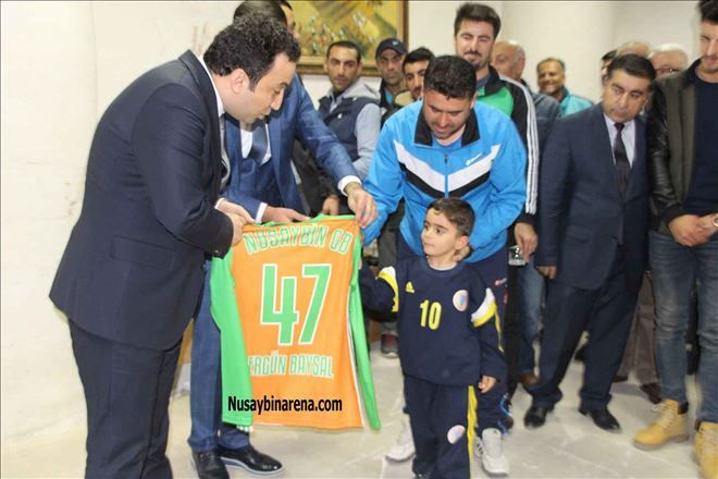 Sportif malzemelerin dağıtımından sonra Nusaybin Gençlerbirliği Teknik Direktörü İdris Oğuz, Baysal´a üzerinde isminin yazılı olduğu forma hediye etti.