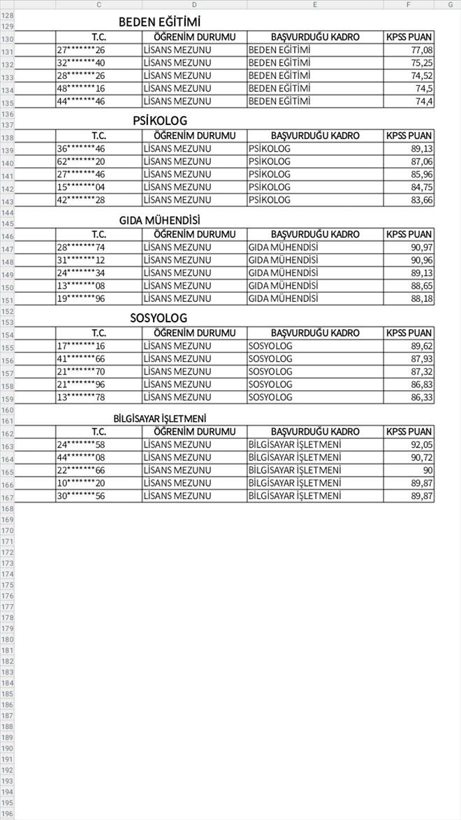 5 FATİH DOĞAN 13*******78 LİSANS MEZUNU SOSYOLOG 86,33