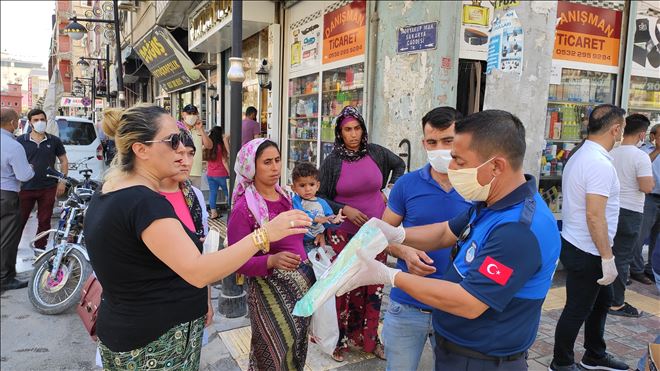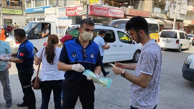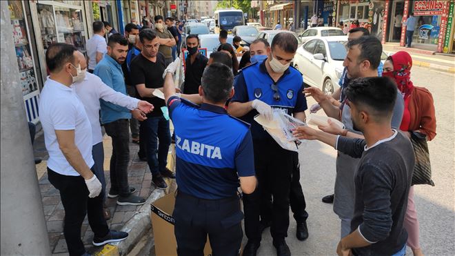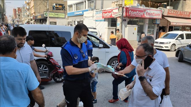 Mardin´de İl Hıfzıssıhha Kurulu tarafından açık alanlarda maske takma zorunluluğunun getirilmesinden sonra Nusaybin´de vatandaşlara ücretsiz maske dağıtıldı.