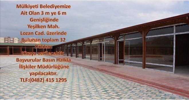 "Belediyemize ayıt Yeşilkent Mahallesi Lozan Caddesi üzerinde bulunan ve daha önce inşa ettiği ve mülkiyeti Belediye´ye ait olan 32 iş yerini kiraya verecektir.