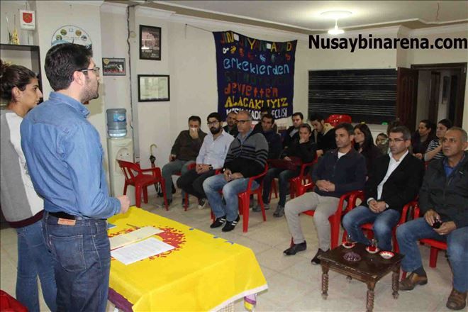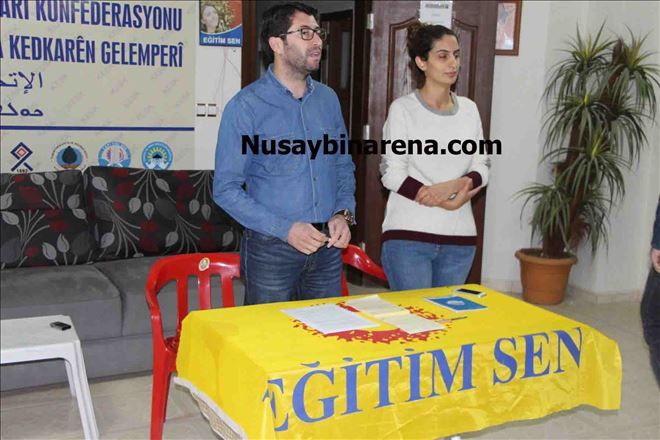 Nusaybin Eğitim-sen binasında binasında basın açıklaması yapan Sabri Narman;