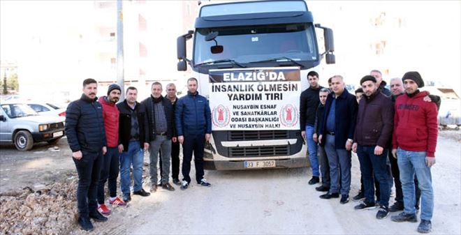 Mardin´in Nusaybin ilçesi Esnaf ve Sanatkârlar Odası (NESO) öncülüğünde toplanan ilk yardım tırı Elazığlı depremzedeler için yola çıktı.