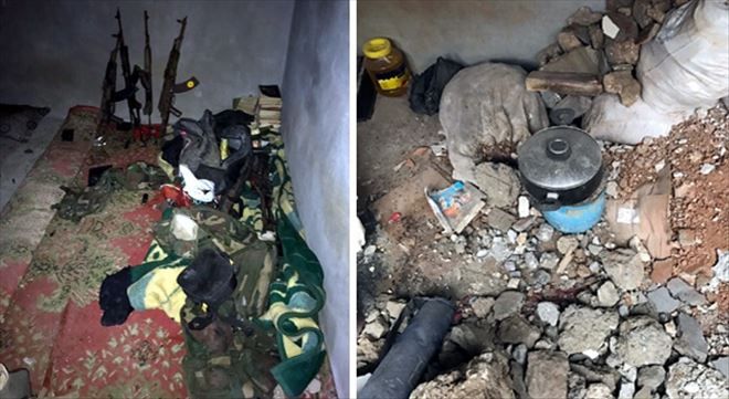 Oda gibi kullanılan sığınakta roketatar, 15 roket atar mühimmatı, biksi ve 4 kalaşnikof silahı, silahlara çok sayıda mühimmat ile yaşam malzemeleri ele geçirildi.