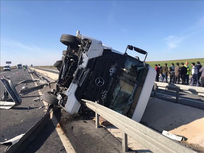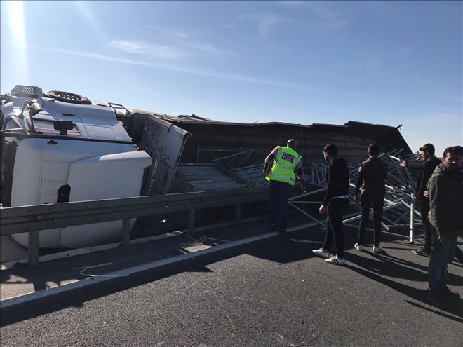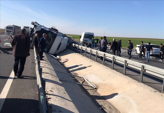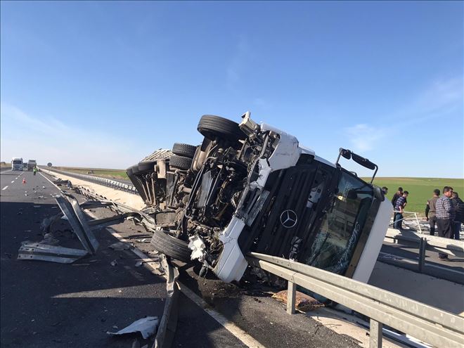 Mardin´in Nusaybin ilçesinde devrilen demir yüklü tır az kalsın faciaya ya neden oluyordu! 2 kişi yaralandı.
