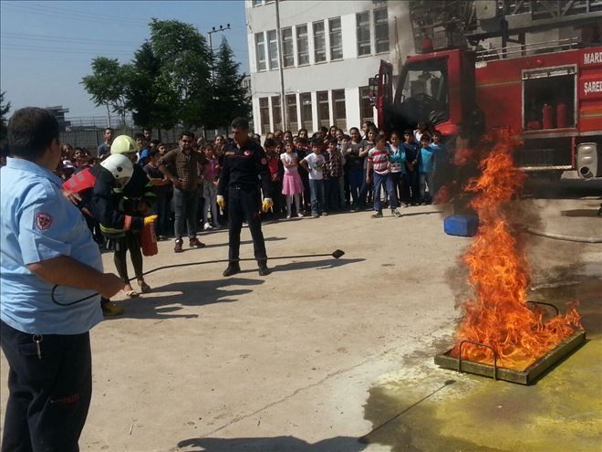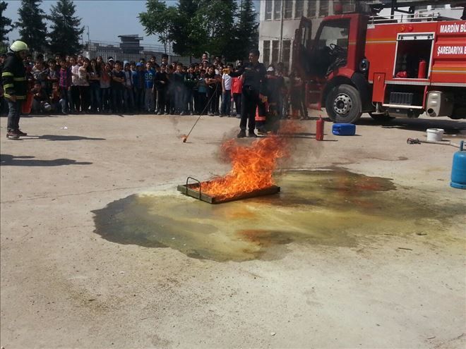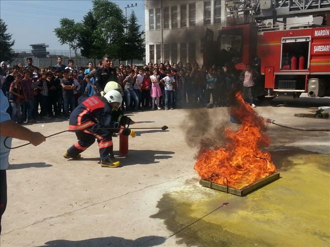 Nusaybin İtfaiye ekipleri okulda tatbikat düzenledi