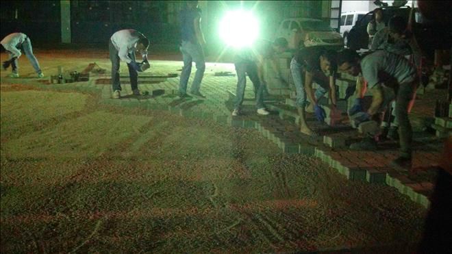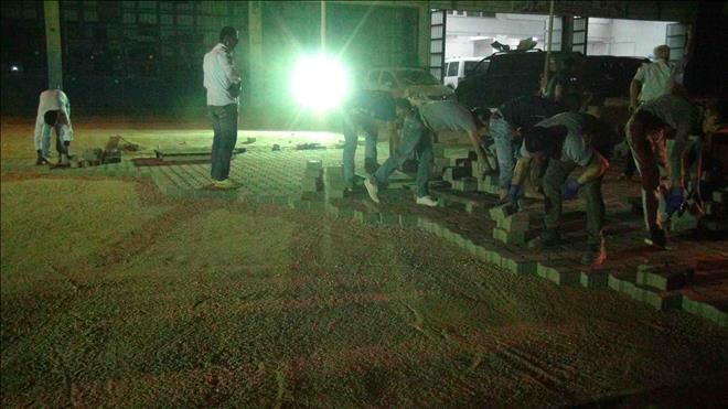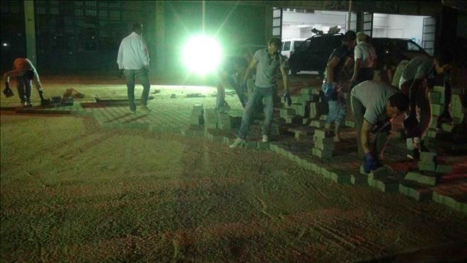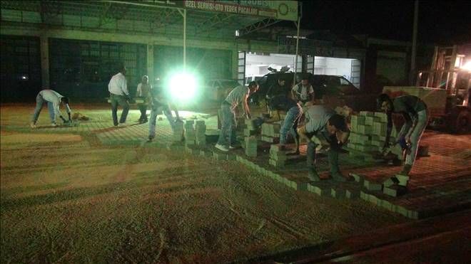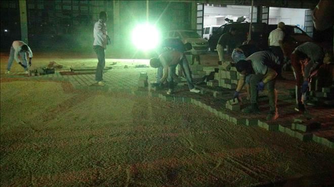 Nusaybin Küçük Sanayi Sitesi yoları yılardır çamurdan geçinmiyordu.Belediye Eş Başbakanı Sara Kaya -Cengiz Kök ve Dika tarafından yalpan yolar ramazan ayı nedeniyle gece sahur saatlerine kadar yol yapım çalışmaları tüm hızıyla devam ediyor.İşçiler sahura kadar parke taşları hızlı bir şekilde döşediği görüldü.-Haber-Ahmet Akkuş