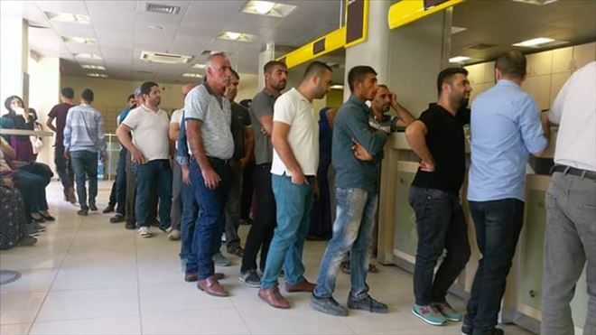 Mardin´in Nusaybin ilçesinde bulunan PTT şubesinde gişelerde 2 memurun çalışması nedeniyle vatandaşlar, işlemlerini yapmak için saatlerce kuyrukta bekleyerek ancak işlemlerini bitirebiliyor.