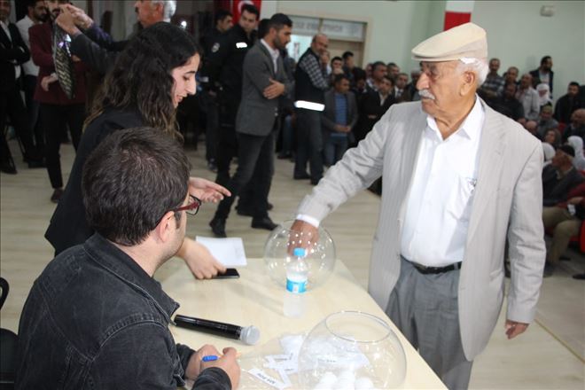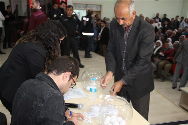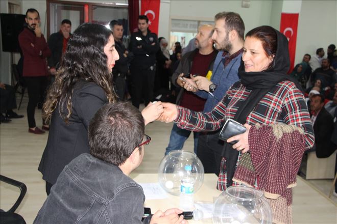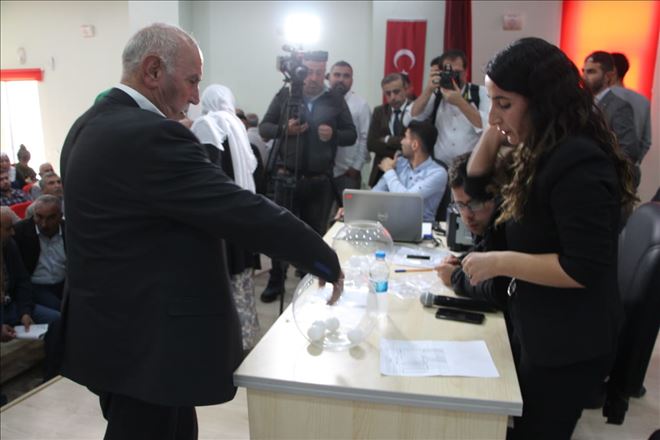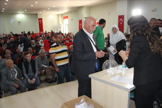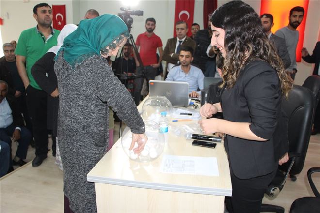 Mardin´in Nusaybin ilçesi, Halk Eğitimi Merkezinde yapılan kura çekimi öncesi saygı duruşunda bulunuldu, İstiklal Marşı okundu. Daha sonra Nusaybin Noteri tarafından hak sahipleri için kura çekimi yapıldı.