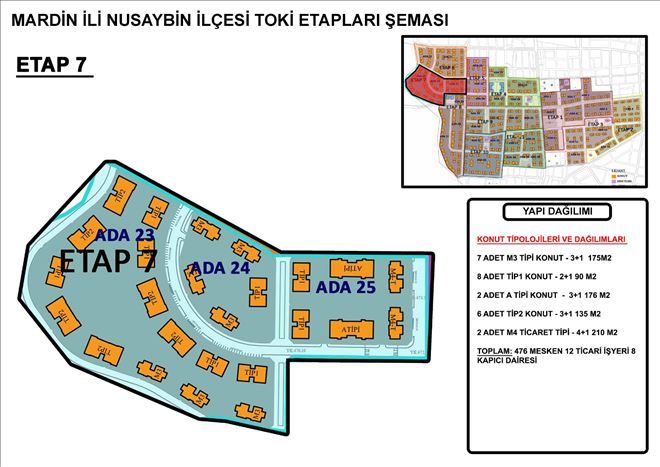 Nusaybin Kentsel Dönüşüm Ofisinden yapılan duyuruda, Fırat Mahallesinde bulunan ve Etap 7 olarak bilinen bölgede bulunan 476 Mesken, 12 Ticari İş yeri ve 8 Kapıcı Dairesi kurasının 12 Şubat 2019 Salı Günü Saat 10.00´da Mitanni Kültür Merkezinde çekileceği belirtildi.