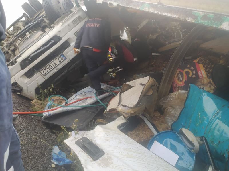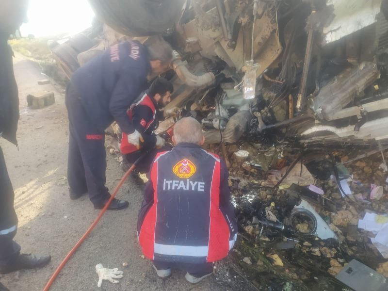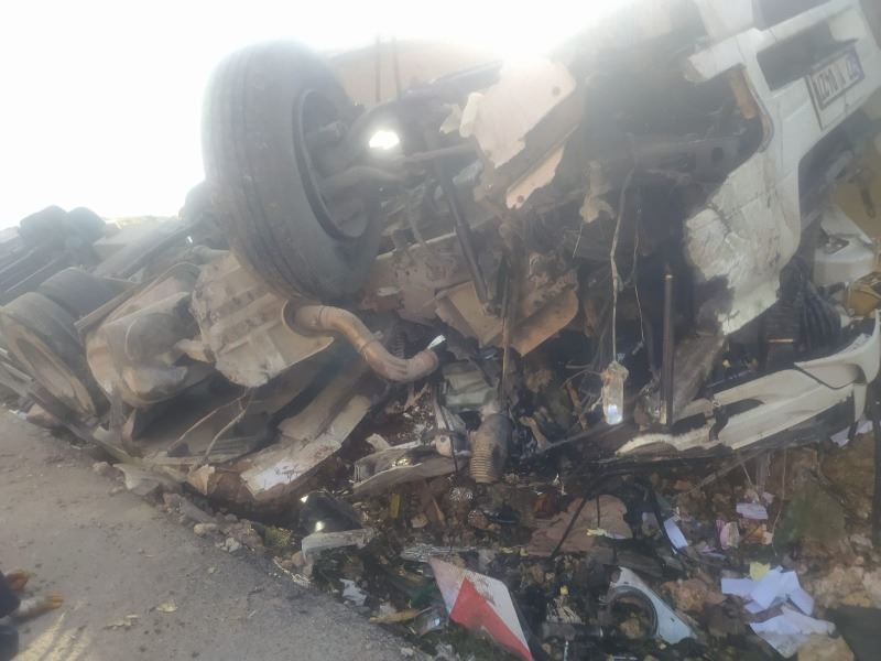 Ahmet AKKUŞ/Mardin’in Nusaybin ile Midyat ilçeleri arasındaki Karayolu üzerinde meydana gelen trafik kazası devrilen TIR, hurdaya dönerken sürücü yaralandı.
