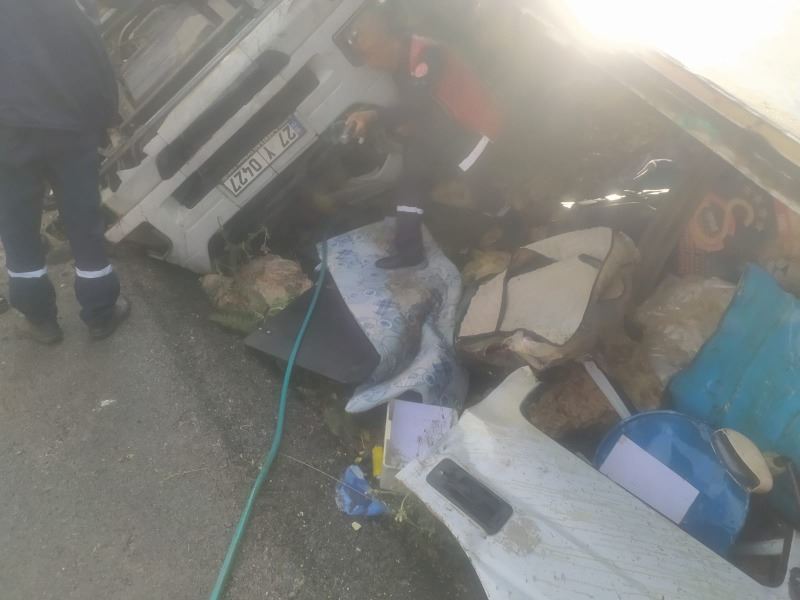 Hurdaya dönen TIR, sürücüsü yaralandı.